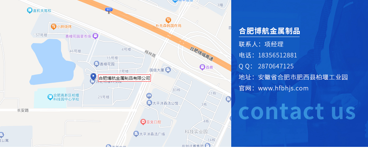 合肥博航金屬制品有限公司是一家從事金屬制品行業20余年,位于具有國際影響力的創新之都和現代化制造基地中國合肥。公司多年來本著誠信經營,顧客至上的原則,服務于國內各大中小企業,我們的專業化程度、技術服務水平、工程質量以及先進的服務理念得到了客...